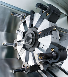 8.26" ( 210 mm ) diameter super high precision curvic couplings accurately position the turret disk and 8,800 Ibs. ( 4,000 kg ) of clamping force ensures abundant turret rigidity for all cutting conditions.