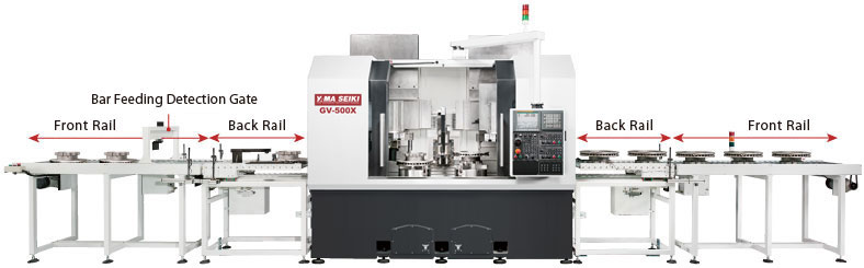 The GV-500X series can be equipped with optional load & unloading systems and work piece flipping device are also available. From bar feeding, processing, flipping, processing and discharging, can all be completed at once which saves manually flipping time and reduces setting error and increases production efficiency.