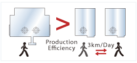 The GV-500X series combines two work process into one to reduce operating time ( when working on two machines ) and increase production efficiency.