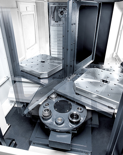 • The Ø 400 mm B-axis embedded table design can be combined with a fixed table to increase the processing area for better machining flexibility.