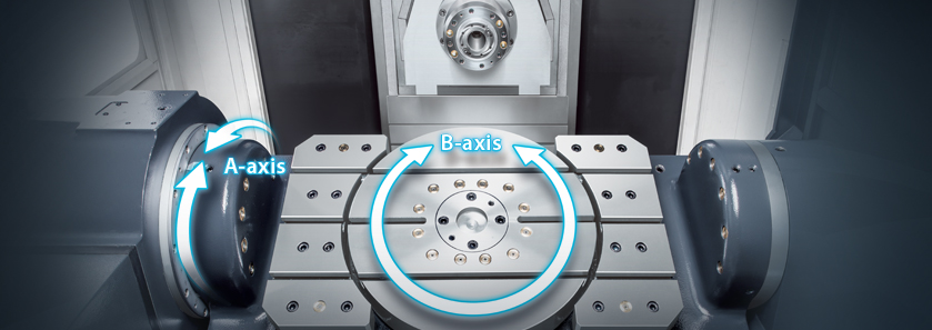 • A / B axes with high resolution closed loop rotary encoders ensure ultimate positioning and repeatability accuracy.