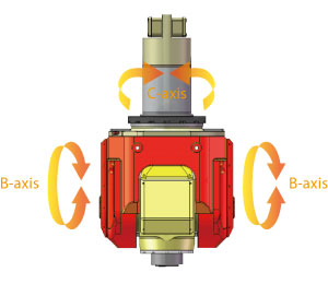Integrated direct-driven motor along with hydraulic clamping system in B, C axis; if compared with traditional worm gear design provides multiple benefits like higher accuracy, zero backlash and low wear out.