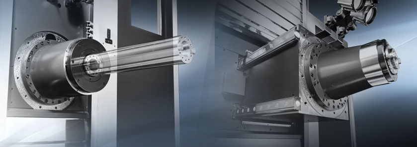 Max. spindle speed at 6,000 rpm ( 8,000 rpm as option ) with built-in spindle which can provide maximum torque output at 600 Nm ( 440 ft-lb ) under 350 rpm.