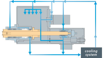 All series is equipped with a spindle oil cooler and cooling jacket, the temperature-regulated volume of cooling oil automatically maintain the temperature of bearings, motor, and gears within precisely defined range which effectively reduce the spindle thermal deformation thus achieving higher machining accuracy.