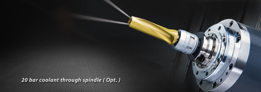 The 6,000 rpm high torque gear spindle is equipped with a high horse powered 26 kW ( 35 HP ) spindle motor which can offer maximum torque of 705 N-m ( 520 ft-lb ) at 352 rpm.