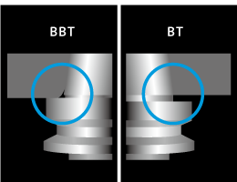 The inner taper of the spindle conforms with the BBT50 tool to provide a firmer grip, therefore reducing the vibration from the tools.