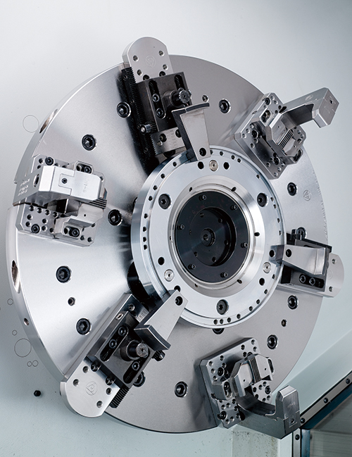 A module design chuck enables processing different sizes of aluminum wheels by simply replacing the cam arm and adjusting the ring locator, thus saving more acquisition costs.
