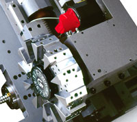 A high-speed servo motor indexing system provides the 10 or 12-station turret with a 0.2 sec. indexing time. Large diameter high precision curvic couplings and hydraulic clamping is used to enhance tool indexing accuracy and turret disk rigidity.