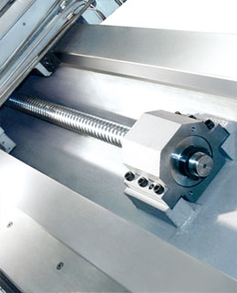 Extra wide hardened and ground box ways are directly formed into the machine bed and saddle during the casting process. They are precision machined and widely spaced for maximum strength. The box way design also provides the rigidity needed for heavy duty and interrupted turning applications.