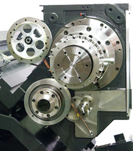 The 2-speed super heavy duty gear head incorporates advance mechanical designs. Mated with a 60 HP ( Peak ) motor to provide tremendous amount of low-end torque to handle heavy material removal on large diameter parts.