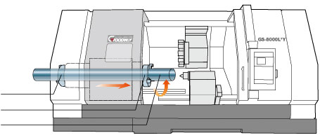By installing air or manual chucks on both the front and rear of the spindle, it becomes possible to machine the ends of long work pieces. This configuration is especially useful in threading pipes.