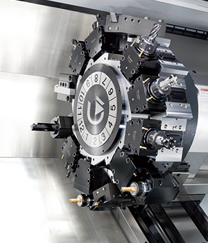 The 12-station live tooling turret offers 12 stations available for live tooling, live tools rotate in working position only to reduce power loss and heat.