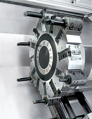YAMA SEIKI live tooling turret utilizes advance servo indexing technology to achieve 0.5 second indexing times for adjacent stations and 1.5 second for stations at the opposite end of the disk.