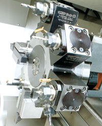 The 8-station YAMA SEIKI live tooling turret offers 8 stations available for line tooling. YAMA SEIKI’s live tooling turret utilize the latest servo indexing technology to achieve 0.2 second indexing times for adjacent stations and 0.5 second for stations at the opposite end of the disk. With the latest technology, live tooling is driven by an AC servo motor to provide ample power, in the form of torque. Now, even the toughest of jobs may be tackled without a sweat.