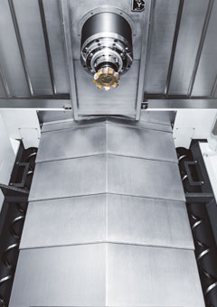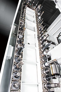 The servo driven arm-type ATC is highly efficient and reliable as all tool change motion and position are monitored by detection sensors and sequential scans. The T-T time is 3.4 sec.