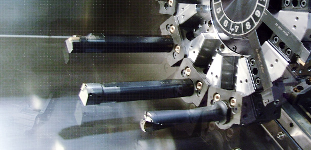 The standard 12-station turret clears 8” diameter work holding devices without interference, even when loaded with tooling at maximum shank size.