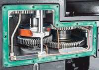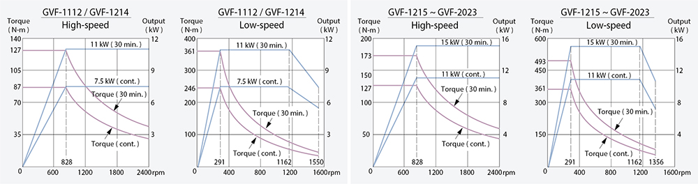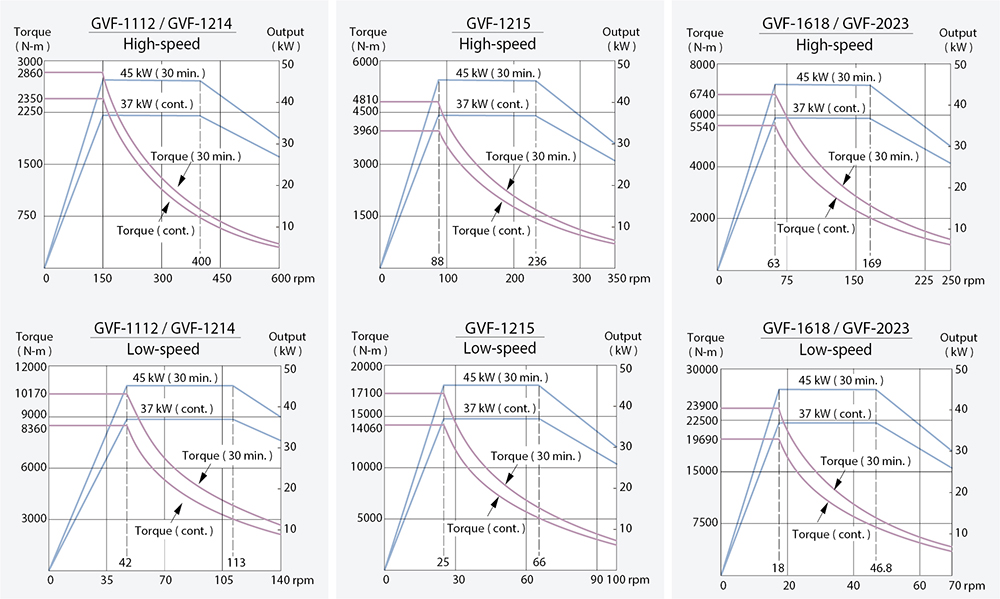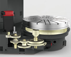 The workpiece spindle uses a high-torque 2-speed gear box mated with a FANUC αi series spindle motor to provide 23,900 N-m ( 17,600 ft-lb ) extra large torque output on the low speed zone and satisfy different machining requirements.